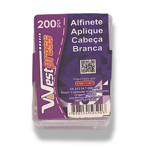Descrição Alfinete Aplique Cabeça Branca AZA Caixa c/200un