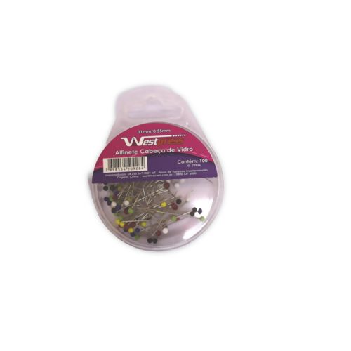 Descrição Alfinete Cabeça de Vidro AZA Colorido Caixa c/100un
