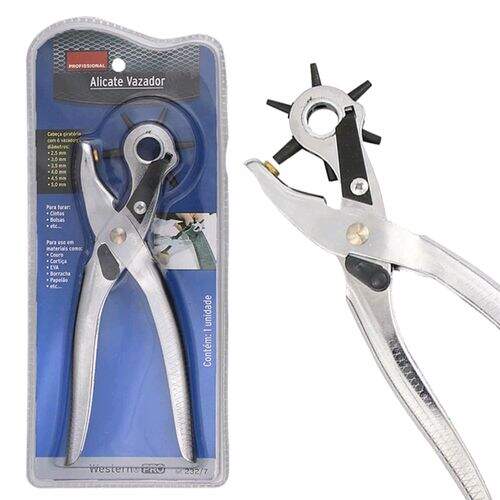 O Alicate Vazador com Cabeça Giratória 232/7 é a ferramenta indispensável para quem busca praticidade e precisão na hora de perfurar materiais como couro, cintos, lonas, plásticos, borrachas e papéis grossos.
