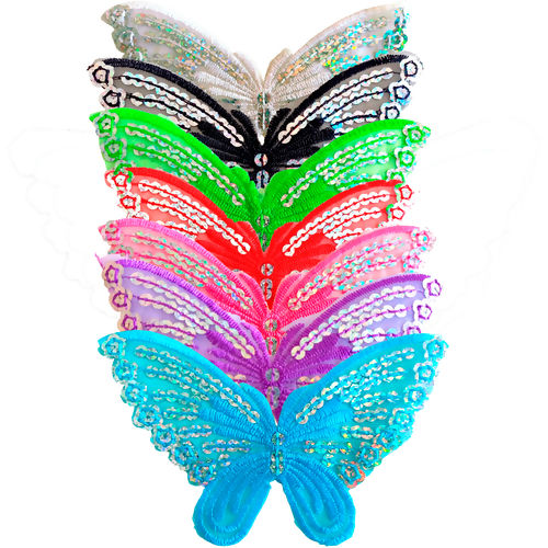 Descrição Aplique Bordado AZA Termocolante de Borboleta c/Lantejoulas 13x08cm un