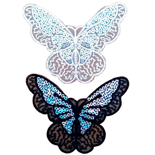 Descrição Aplique Bordado AZA Termocolante de Borboleta c/Lantejoulas 14x11cm un