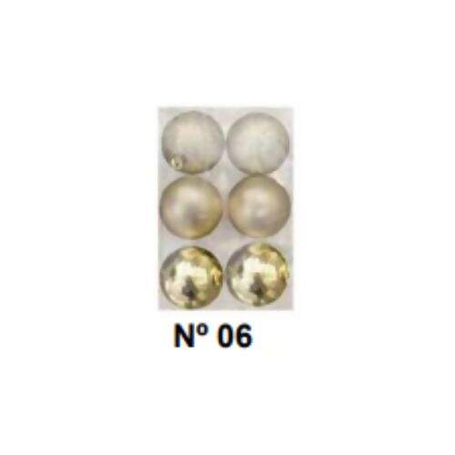 Descrição Bola de Natal Nº6 Dourado Brilhante, Fosca e Glitter NT0066-G 6un
