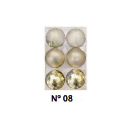 Bola de Natal Nº8 Brillhante Fosca e Glitter NT008-G Dourado 6un