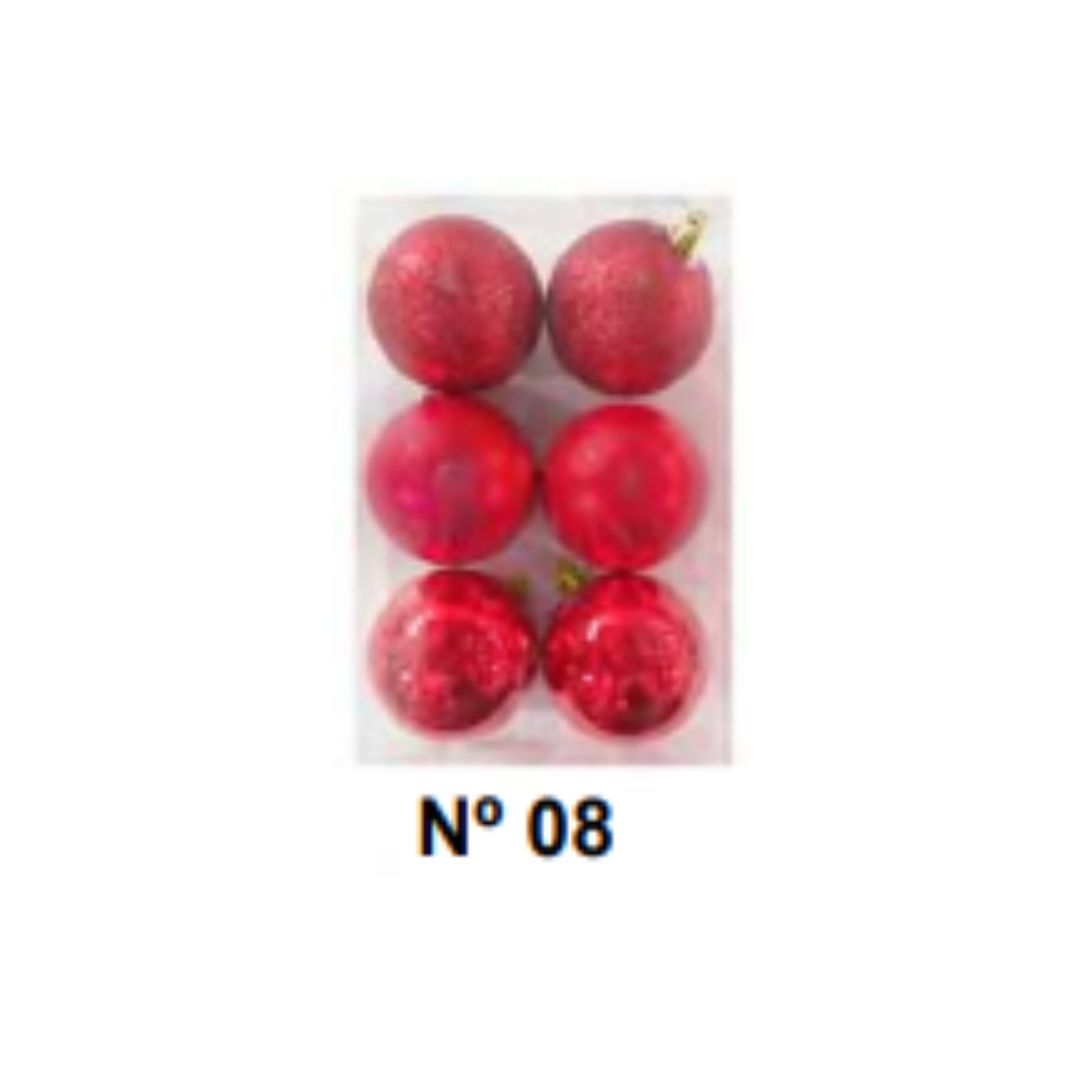 Descrição Bola de Natal Nº8 Vermelho Brilhante,Fosca e Glitter NT008-R 6un