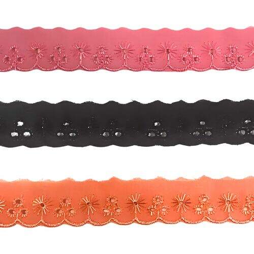 O acabamento reforçado nas bordas evita o desfiamento, facilitando a aplicação tanto à mão quanto à máquina. Por ser vendido em peça com 13,70 metros, o bordado oferece excelente rendimento e praticidade, ideal para costureiras, ateliês, confecções e artesãos que produzem em escala ou realizam trabalhos personalizados.