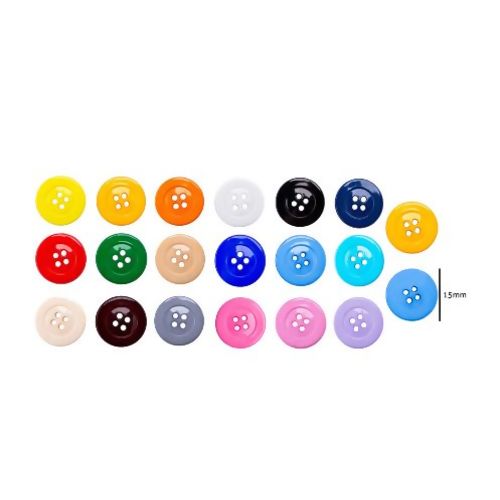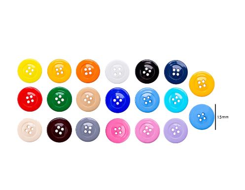 Com 15mm de diâmetro e design clássico de 4 furos, ele garante costura firme, prática e resistente em diferentes tipos de tecidos.