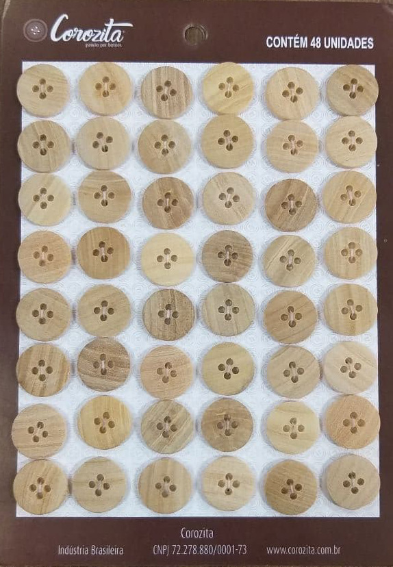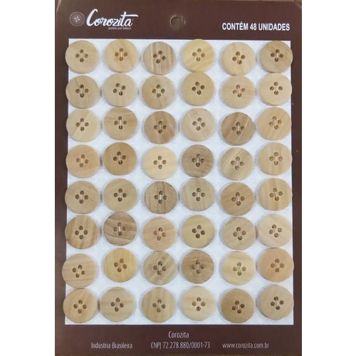Descrição Botão de Madeira Corozita 4001-24 15mm Pacote c/48un
