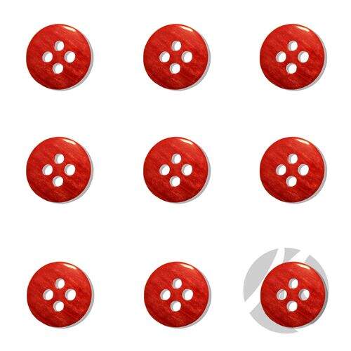 Botão com 4 furos para diversas aplicações, como camisas, casacos e jalecos.