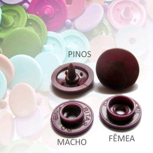 Botão de pressão para aplicar, indicado para roupas de bebê, roupas e artesanato em geral. Composição do botão: 2 pinos, 1 macho, 1 fêmea