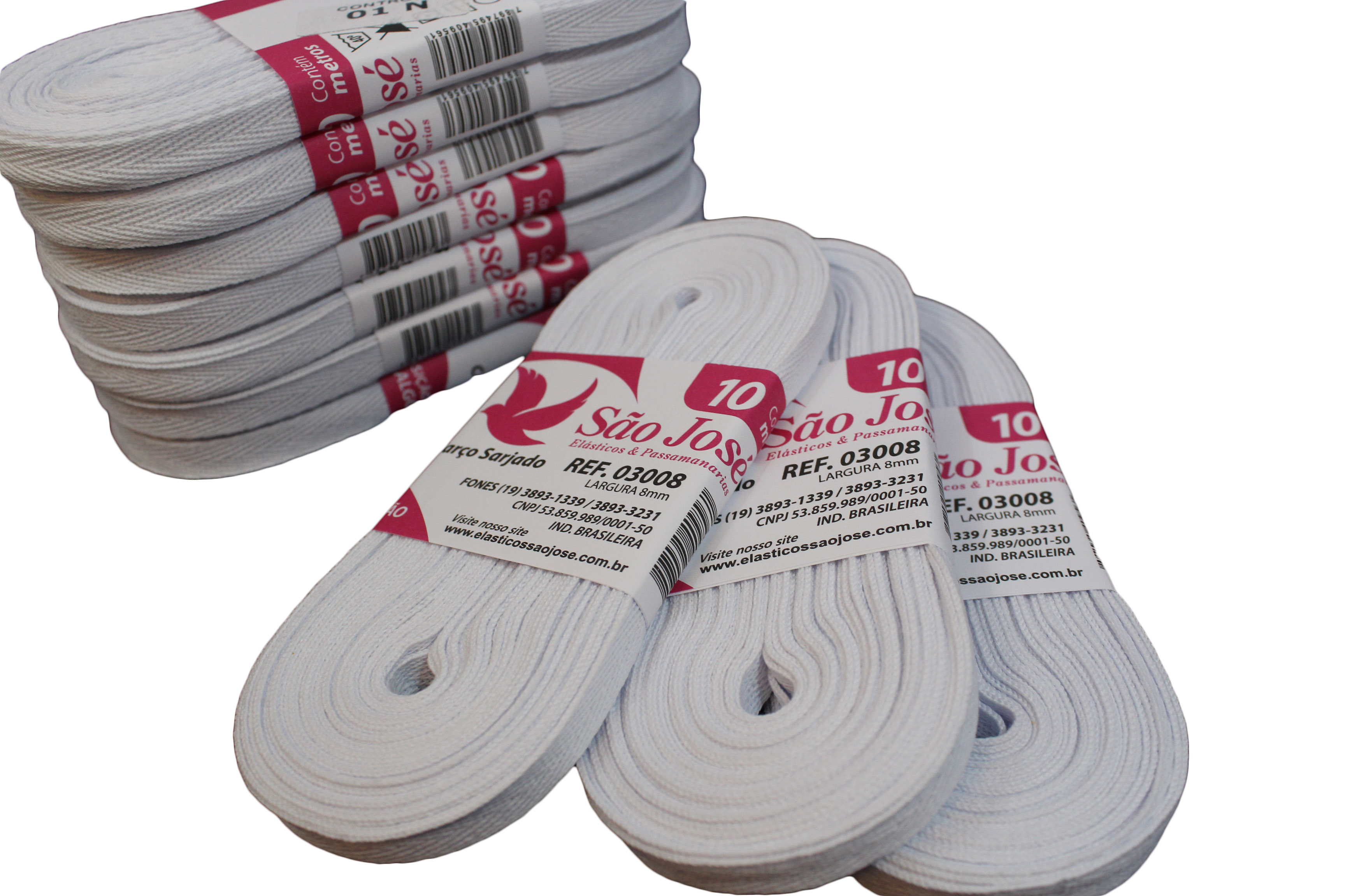 Descrição Cadarço Sarjado São José Ref.3008 Branco 8mm Pacote c/10un