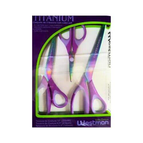 Descrição Conjunto Tesoura Westpress Titânio C/3 UN Roxo