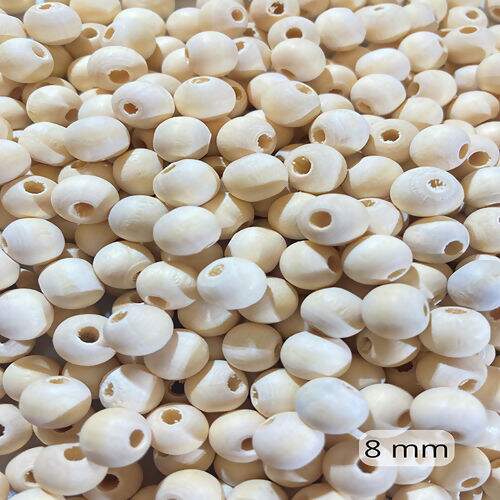 Contas de Madeira Natural - 8mm c/furo - c/500g - Redondo