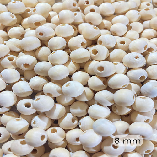 Descrição Contas de Madeira Natural - 8mm c/furo - c/500g - Redondo