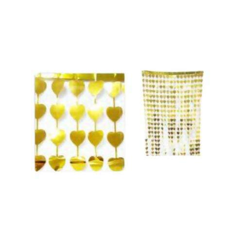 Descrição Cortina de Fita Metaloide PA0502-GO Coração Ouro 2m