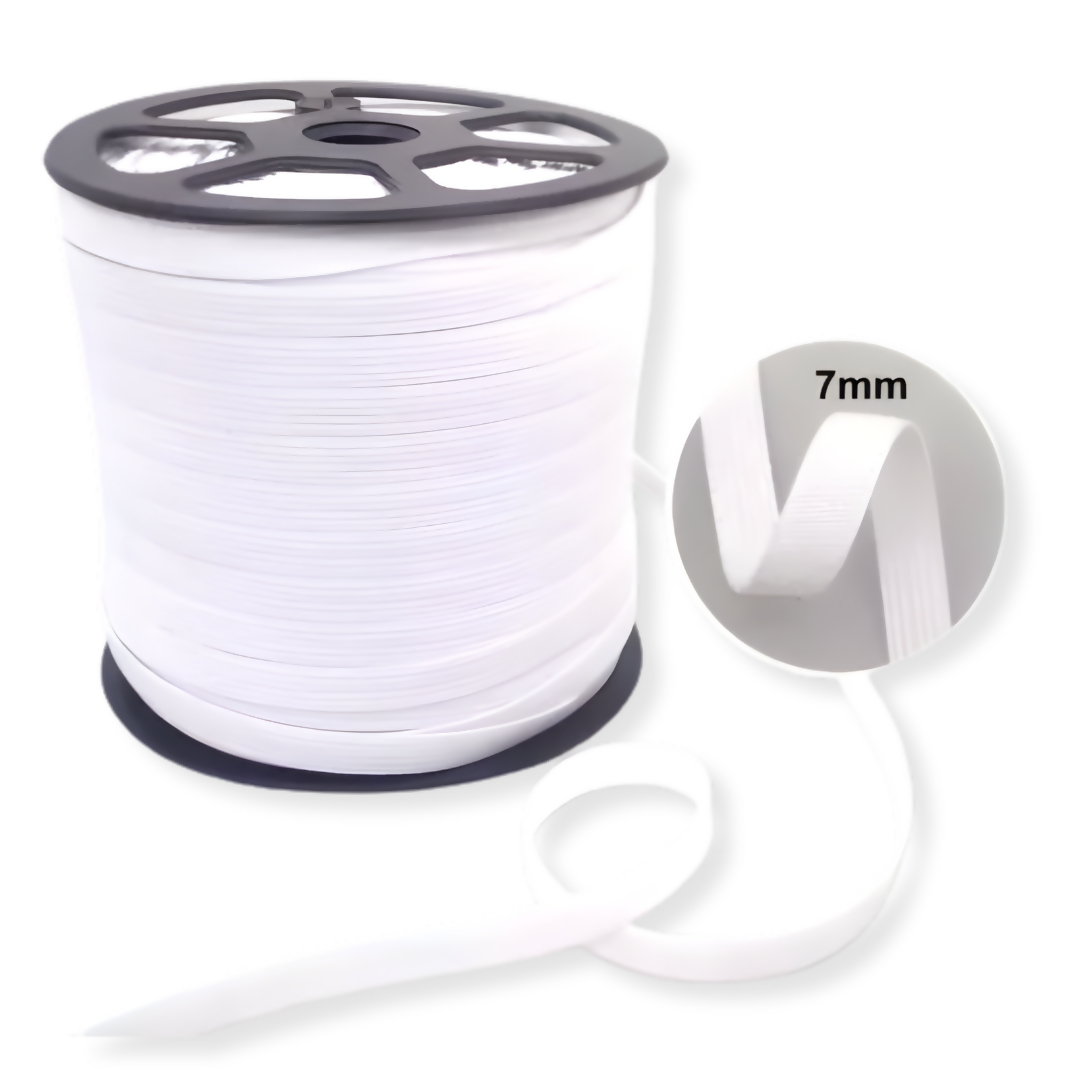 Elástico de embutir, pode ser aplicado em moda íntima, vestuário em geral, cama, mesa e banho, Utilizado também em artesanato.