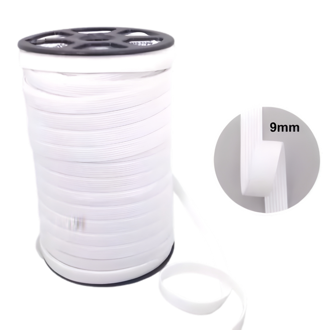 Elástico de embutir, pode ser aplicado em moda íntima, vestuário em geral, cama, mesa e banho, Utilizado também em artesanato.