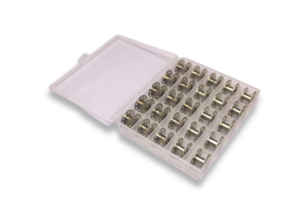 Estojo com 24 bobinas de metal para suas produções de artesanato e costura