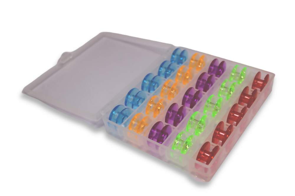 Estojo com 25 bobinas de plástico e cores variadas para suas confecções