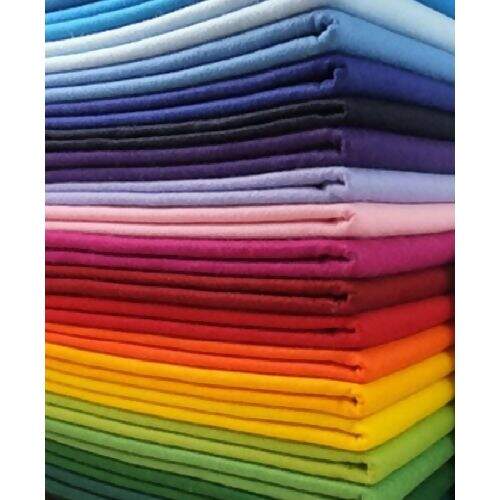 Feltros lisos em cores diversas, compostos por fibras de alta durabilidade. Não desfiam com o corte e suportam colagens. Toque suave e aveludado.