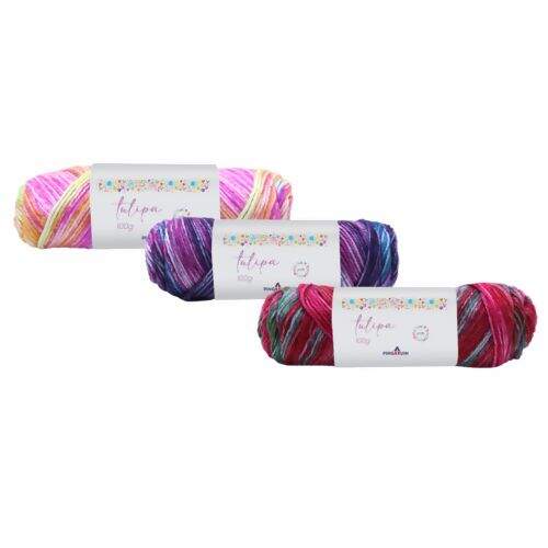Inspirado na beleza das flores, o fio Tulipa oferece um toque macio, proveniente de um acrílico premium de alta qualidade. Seu fio delicado desliza suavemente pelas agulhas, proporcionando um manuseio agradável e um acabamento impecável. Com suas cores vibrantes que se entrelaçam em um degradê irregular, o Tulipa traz um toque moderno e cheio de vida, garantindo criações únicas e cheias de personalidade. Essa transição de tons imprevisível cria efeitos visuais surpreendentes, tornando cada peça exclusiva e especial. Versátil e de excelente rendimento, esse fio é ideal para confeccionar cachecóis, blusas, xalés, mantas e acessórios diferenciados. Sua composição 100% acrílico proporciona leveza, conforto térmico e durabilidade, garantindo que suas criações permaneçam bonitas e bem estruturadas por muito mais tempo. Com Tulipa, cada ponto floresce em um espetáculo de cores e texturas, transformando seus projetos em verdadeiras obras de arte