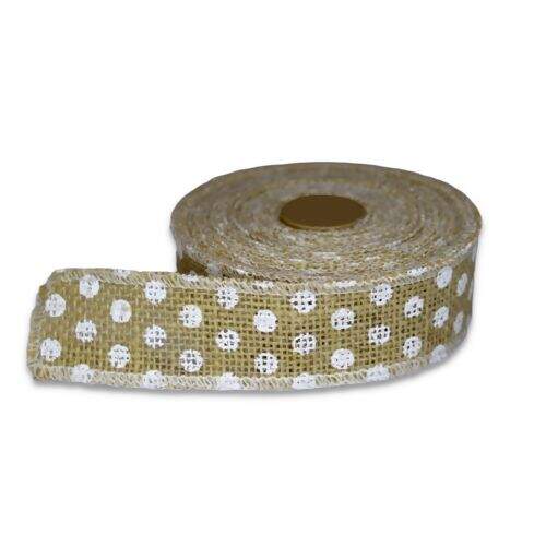 Linda fita de Juta com pontinhos brancos, 4cm x 9,5m Uniart perfeita para sua próxima decoração