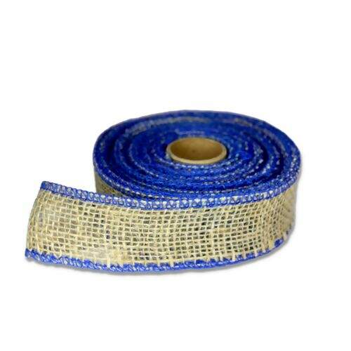 Fita de Juta 380, 4cm x 9,5m com detalhes em azul, ótima qualidade e perfeito para sua próxima decoração