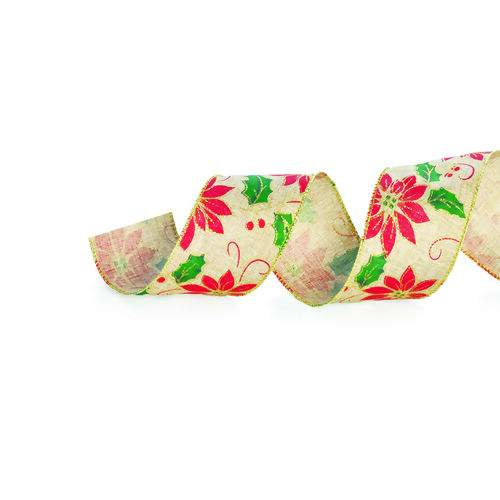 Descrição Fita de Natal Aramada Cromus Azevinho Natural Vermelho 1613963 3,8cmx9,14m