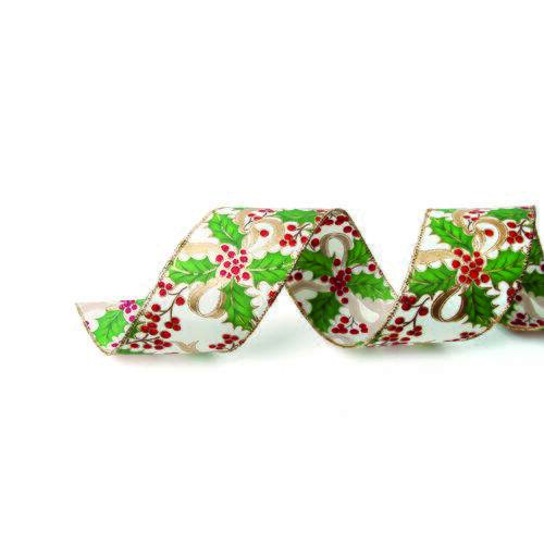 Fita de Natal Aramada Cromus Azevinho Vermelho e Verde 1750710 3,8cmx9,14m