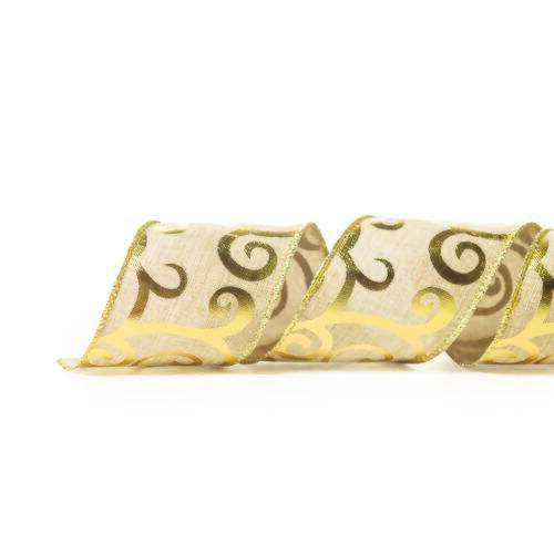 Descrição Fita de Natal Aramada Cromus Caracol Natural Ouro 1141388 6,3cmx9,14m
