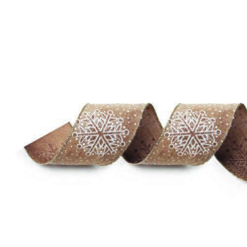 Fita de Natal Aramada Cromus Juta Floco Neve Natural Branco e Ouro 1750308 6,3cmxx9,14m