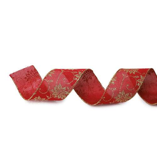 Descrição Fita de Natal Aramada Cromus Juta Flores Vermelho e Ouro 1717265 6,3cmx9,14m