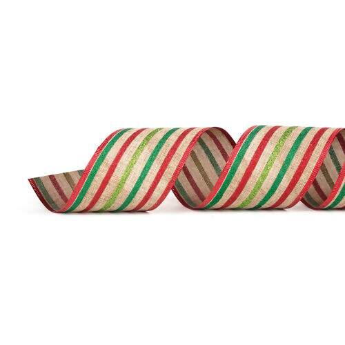 Descrição Fita de Natal Aramada Cromus Listrada Colorida 1014306 6,3cmx9,14m