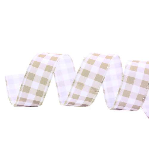 Fita de Natal Aramada Cromus Xadrez Branco e Cinza 1117682 3,8cmx9,14m