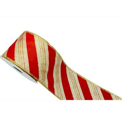 Descrição Fita de Natal Aramada Listrada Vermelho c/ Dourado NT0202-9 6,3cmx10m