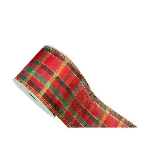 Descrição Fita de Natal Aramada Xadrez Vermelho Verde e Dourado NT0201-25 6,3cmx10m