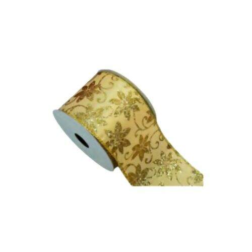 Descrição Fita De Natal Flores Dourada NT0200-9 6,3cmx10m