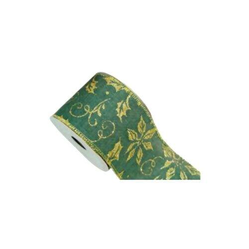 Descrição Fita De Natal Verde com Dourado NT0201-13 6,3cmx10m