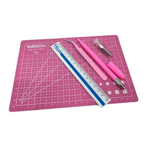 Kit Base de Corte 22x15 A5 com Régua Estilete de Precisão e Pinça Westpress