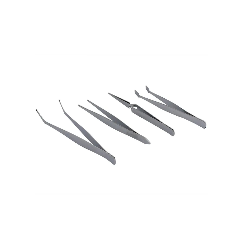 Com quatro modelos diferentes de pinças, este kit atende perfeitamente às necessidades de artesãos, modelistas, eletrônicos, relojoeiros, hobbistas e uso doméstico, oferecendo a ferramenta ideal para cada tarefa. Fabricadas em aço inoxidável de alta durabilidade, as pinças possuem acabamento resistente à oxidação, garantindo longa vida útil e excelente desempenho mesmo com uso constante. Cada peça oferece pegada firme, pontas cuidadosamente definidas e precisão superior para manipular objetos pequenos, delicados ou sensíveis.