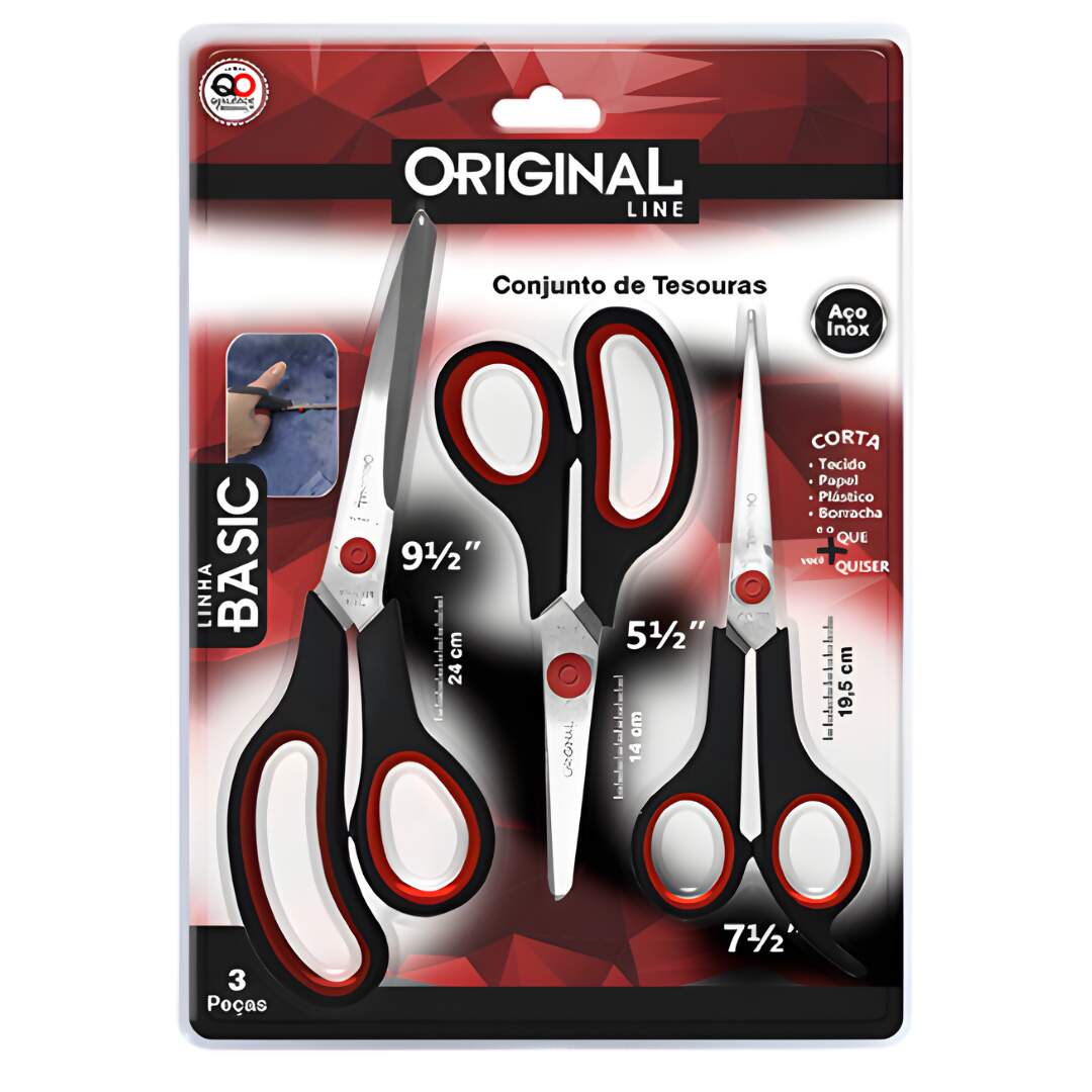 O Kit de Tesouras Original Basic SL0082D reúne três tesouras essenciais para profissionais e hobistas que buscam precisão, conforto e durabilidade em um único conjunto. Com tamanhos variados – 5 ½” (14cm), 7 ½” (19,5cm) e 9 ½” (24cm) – este kit é ideal para cortes detalhados, médios e longos, atendendo a todas as necessidades de costura, artesanato, bordado ou uso doméstico.