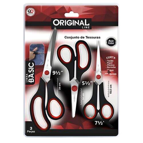 Descrição Kit de Tesoura Original Basic 3 Peças SL0082D Preto 9½ 24cm 5½ 14cm 7½ 19,5cm