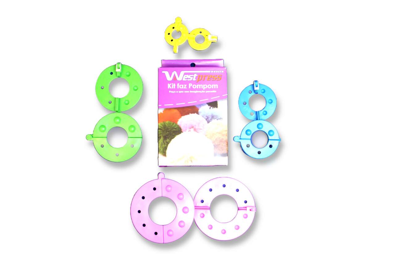 O pompom é um acessório que combina com as mais variadas peças de moda e decoração, em estilos sofisticados ou casuais. O kit faz pompom é composto por quatro peças de tamanhos diferentes, excelente para fazer pompom de formas e tamanhos padronizados, dando um acabamento perfeito.