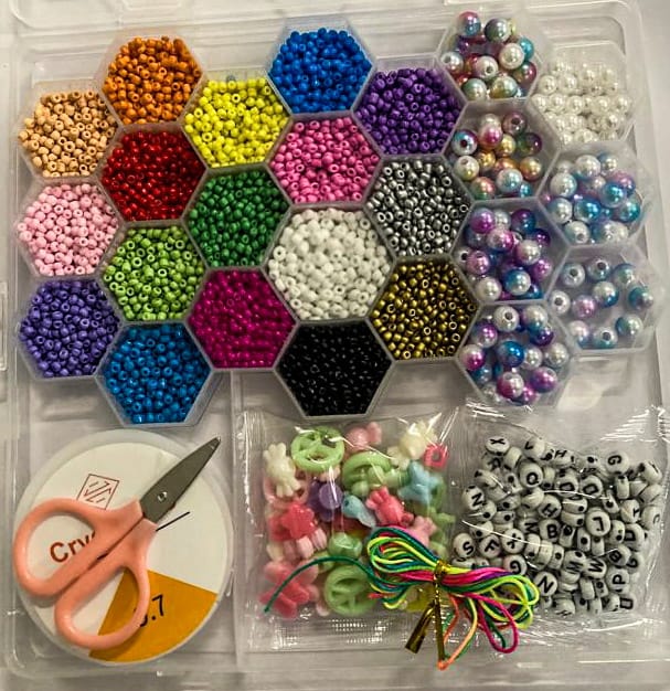 Descrição Kit Maleta de miçanga colorida - 4 modelos
