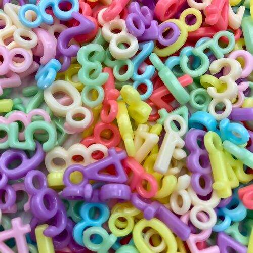 Descrição Miçanga Plástica de Numerais Pacote com 500g