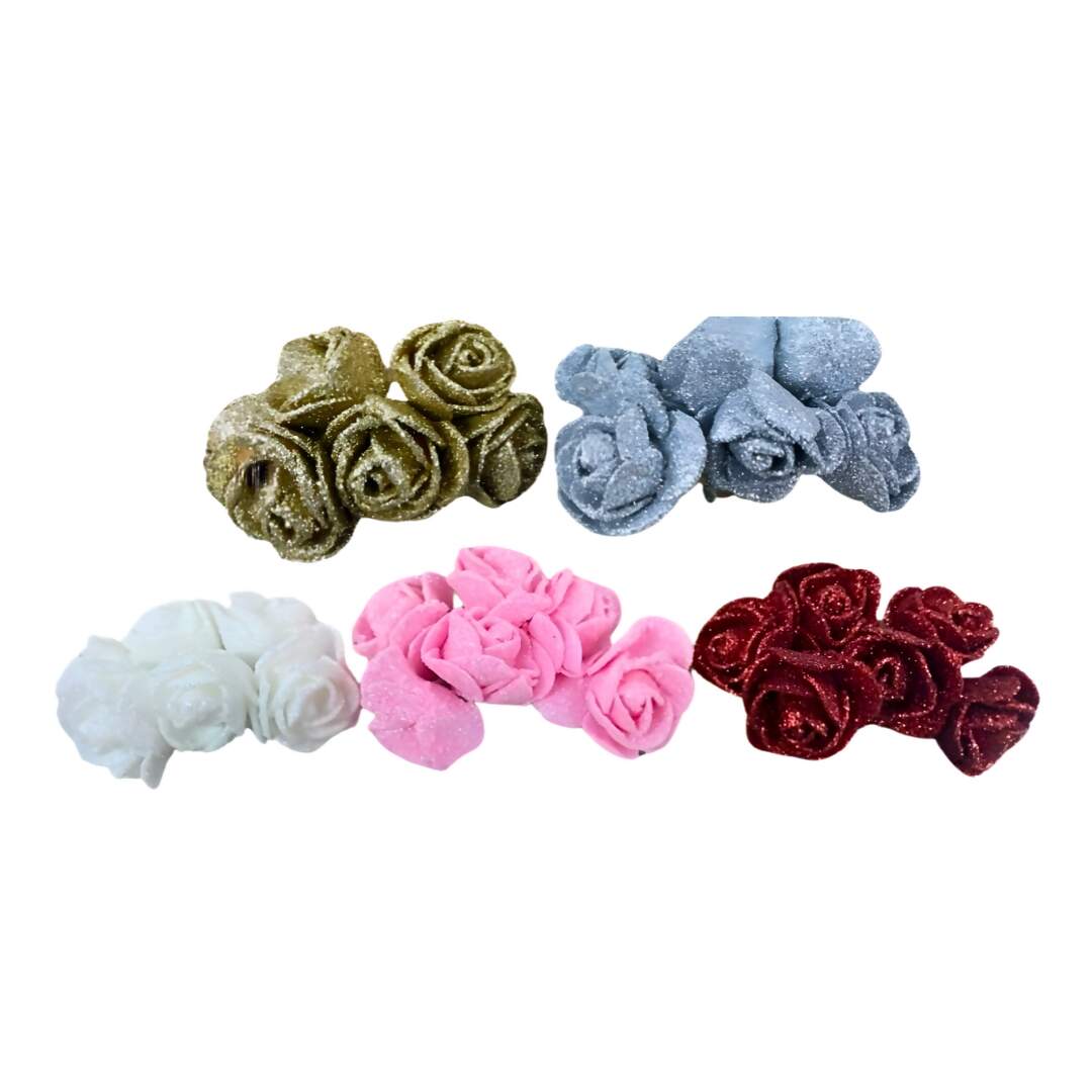 Mini Flor Rosa de EVA com Glitter AZA MF004 3,5cm Pacote c/72un