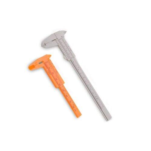 Faça suas medições internas ou externas utilizando esses dois paquímetros de plástico. Muito leve e resistente, também pode ser utilizado para medida de passo e profundidade.
