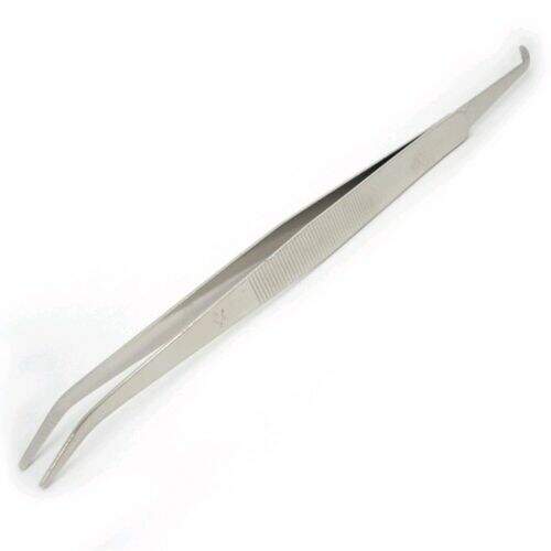 Pinça de metal niquelado, com pescador, auxiliar nas operações de overloque, passa elástico e outras atribuições.