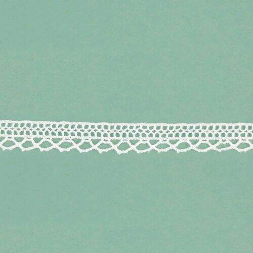 Renda em algodão, utilizada para artesanato, confecções, decoração e outros. Aceita tingimento.