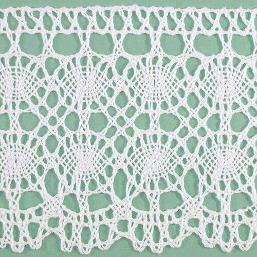 Renda em algodão, utilizada para artesanato, confecções, decoração e outros. Aceita tingimento.