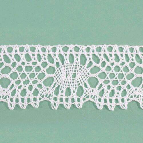 Renda em algodão, utilizada para artesanato, confecções, decoração e outros. Aceita tingimento.